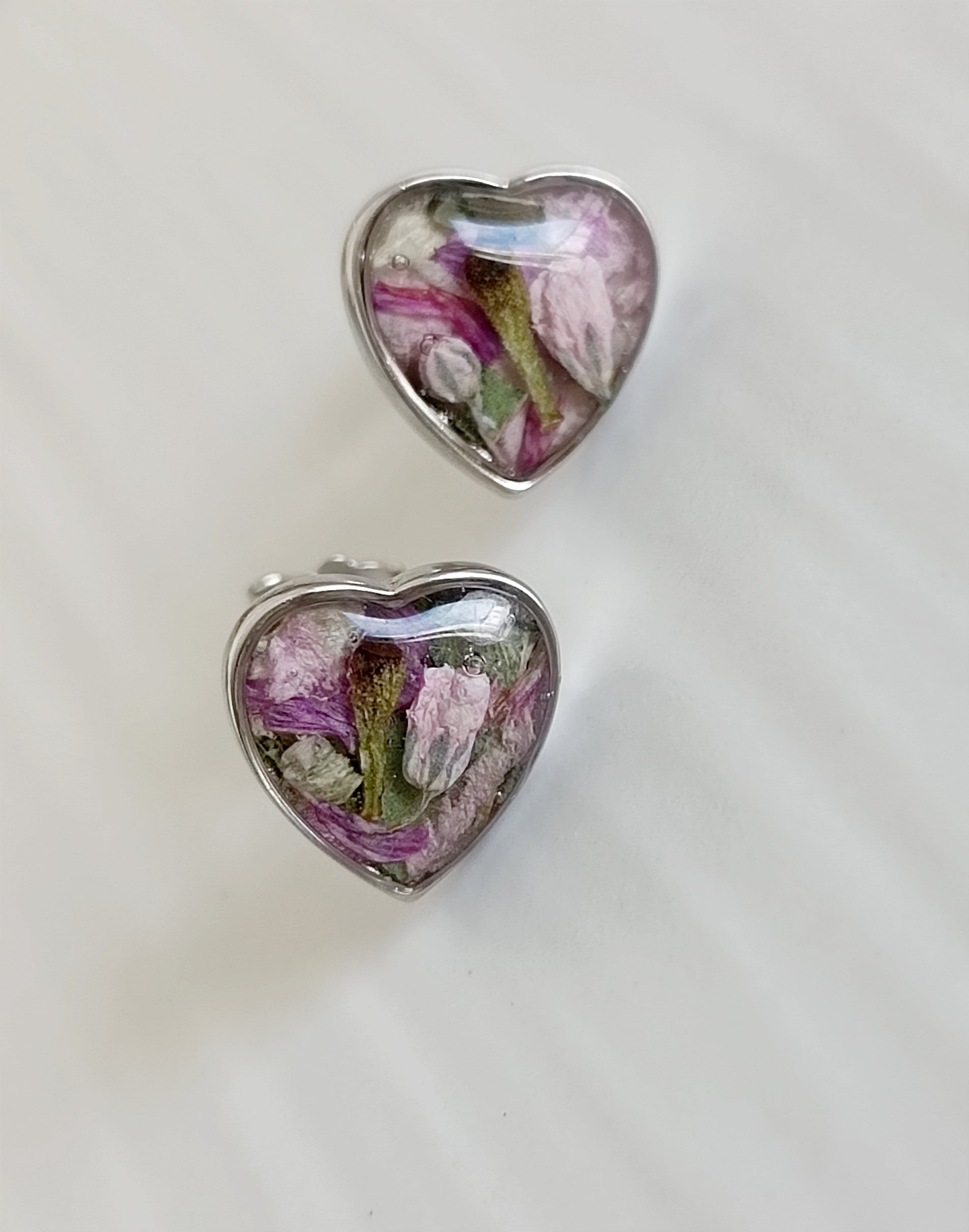 Hier kannst du deine Blümchen im Set "Herzen" verewigen. Es besteht aus einer Kette mit Anhänger und den dazu passenden Ohrsteckern.